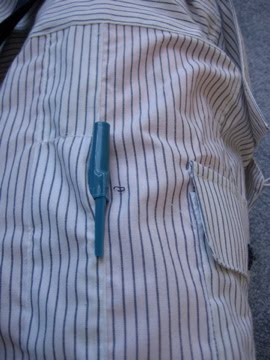 And there was this fold/pleat thing in the centre back of the shirt that I didn't want to go to waste, so I used it to make secret pockets (which are no longer very secret). On the outside, there are four pockets for pens (two near the top of the bag and two near the bottom).